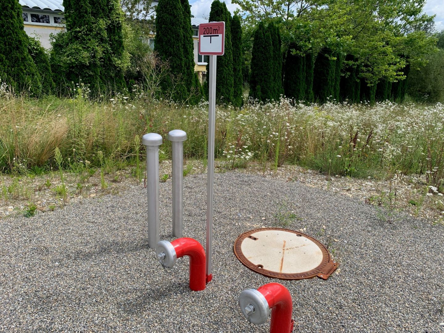 Löschwassermenge pro Stunde aus dem bestehenden Versorgungsnetz nicht aus. Hierzu wurden 2 Löschwasserbehälter